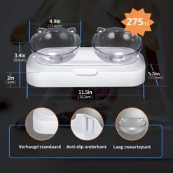 Behave Dubbele Voerbak – Drinkbak – Katten – Verstelbaar – Wit
