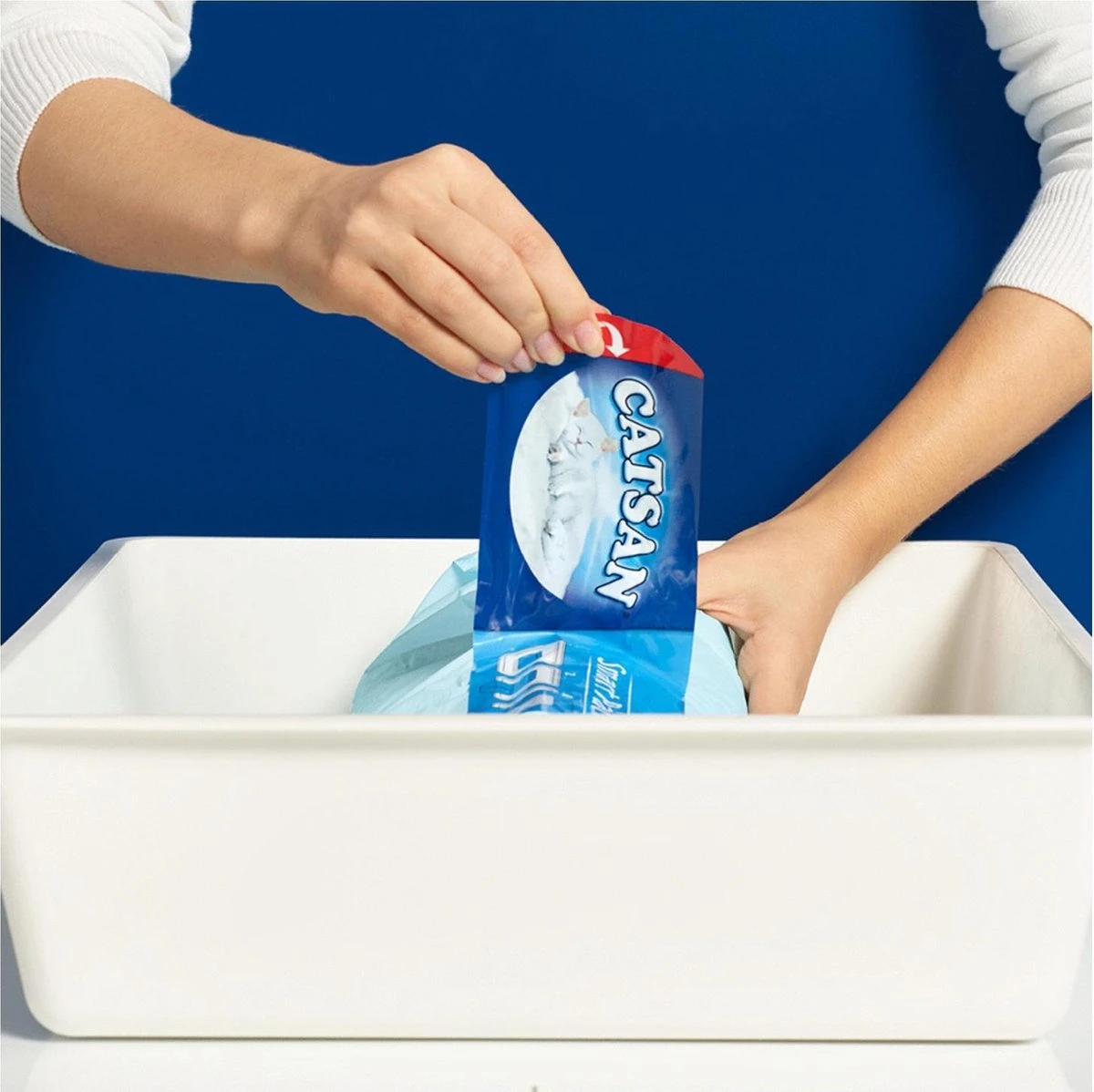 Na 710 dagen (afhankelijk van gebruik) kan je de Smart Pack™ eenvoudig zonder knoeien in zijn geheel uit de kattenbak halen. Trek de randen naar elkaar toe, knoop het dicht en gooi de pack bij het afval. Catsan, expert in kattenhygiëne