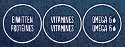 | Analytische bestandsdelen | Analytische bestanddelen::<br />Eiwit: 35,0%,<br />Vetgehalte: 19,5%,<br />Ruwe as: 8,5%,<br />Ruwe celstof: 0,5%,<br />Omega 6-vetzuren: 2,6%.<br />Analytische bestanddelen::<br />Eiwit: 35,0%,<br />Vetgehalte: 19,5%,<br />Ruwe as: 8,5%,<br />Ruwe celstof: 0,5%,<br />Omega 6-vetzuren: 2,6%. |