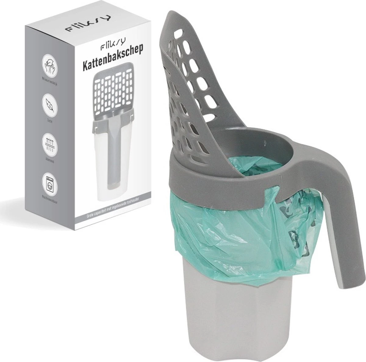 Fliksy Kattenbak Schep – Kattenbak Schepje Met Bakje – Kattenzakje – Katten – Haarverwijderaar – Kattenspeeltje