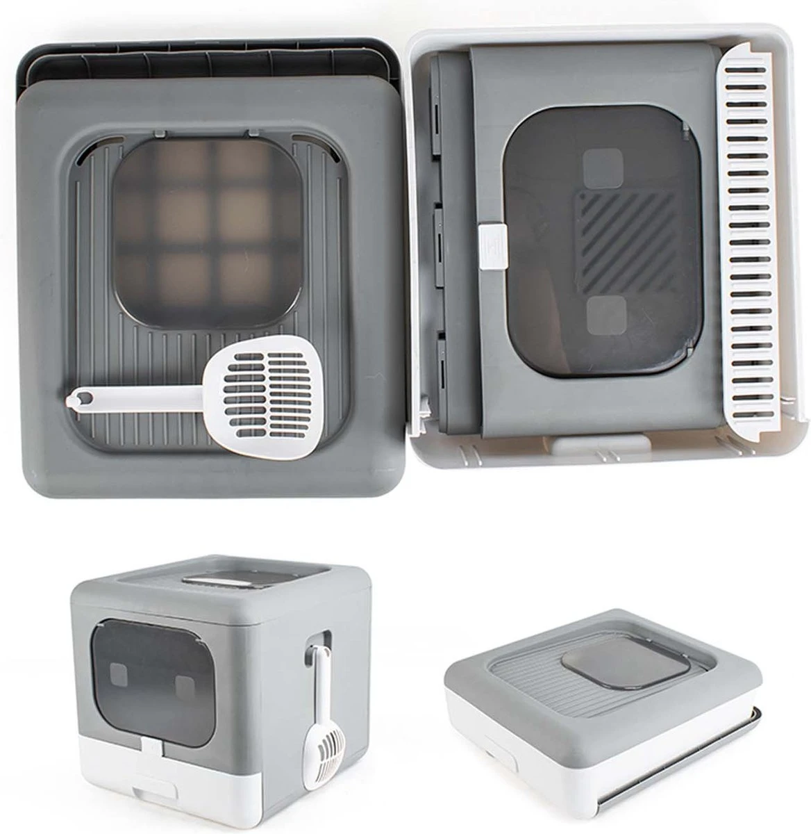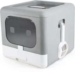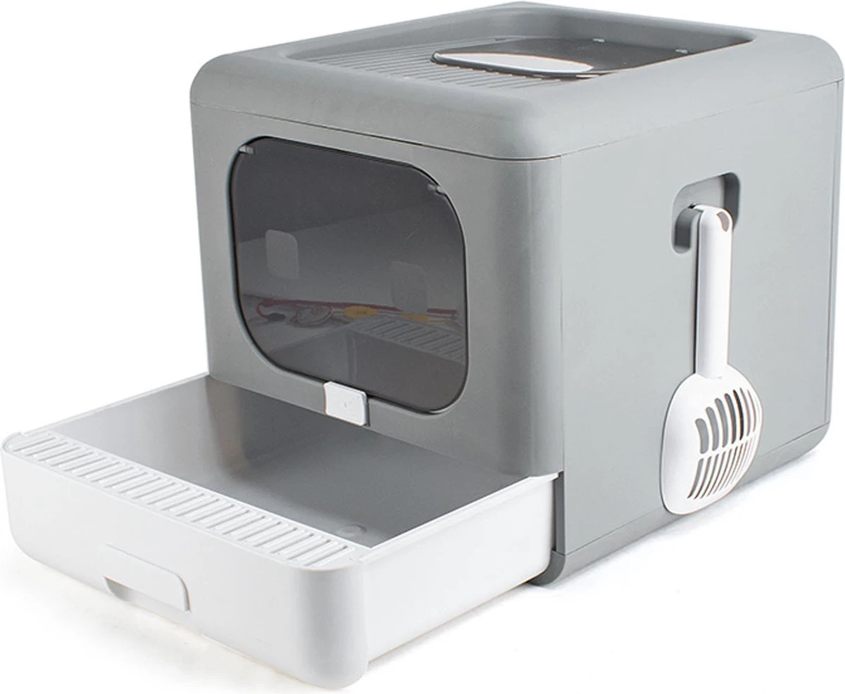 De luxe grijze kleur geeft deze kattenbak een modern uiterlijk.