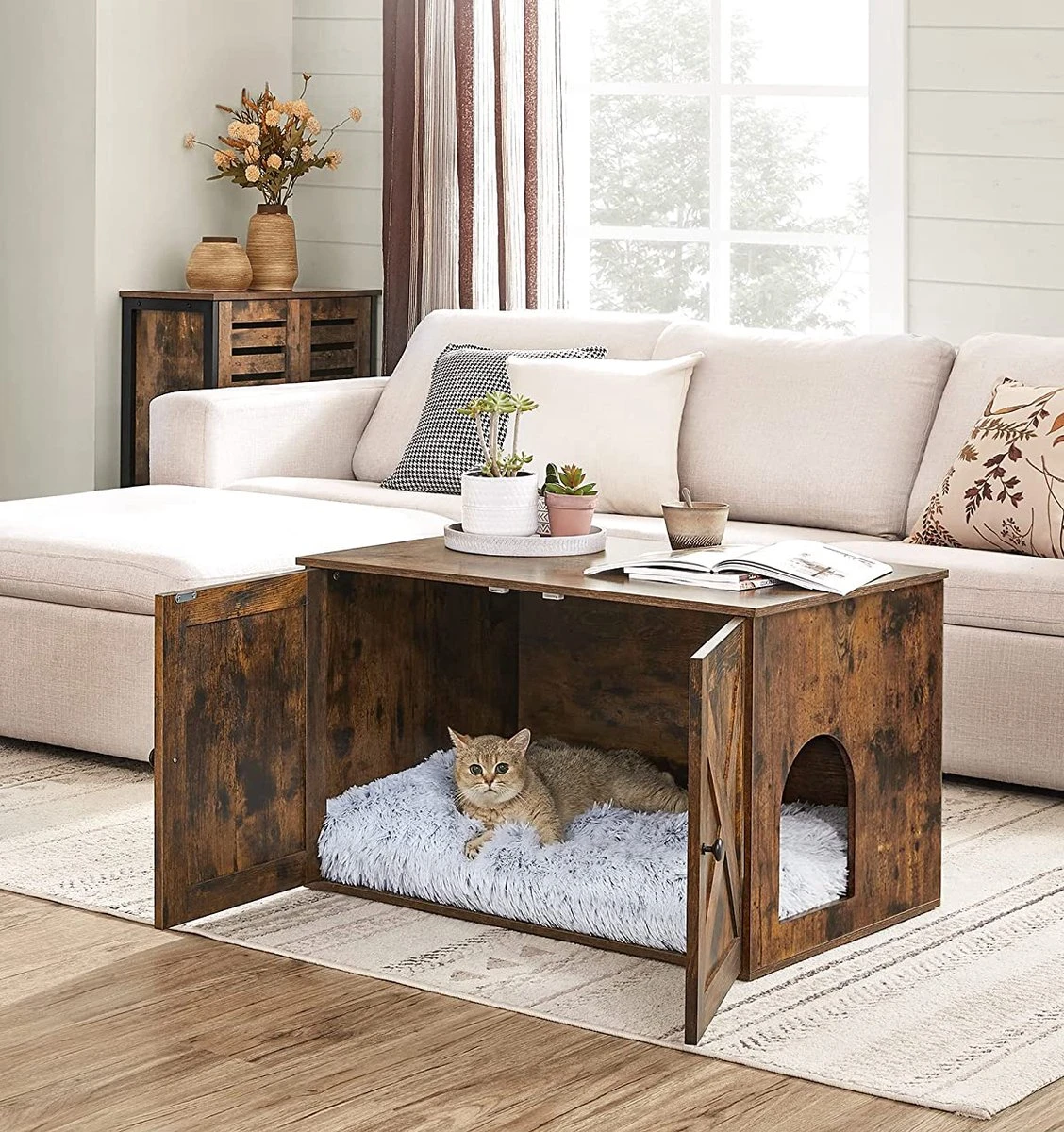 Dit kattenhuis is ook een meubel. Het heeft een groot tafelblad dat tot 60 kg kan worden belast. Je kan er een lamp, potplant of een paar tijdschriften op leggen om een gezellig hoekje te creëren.