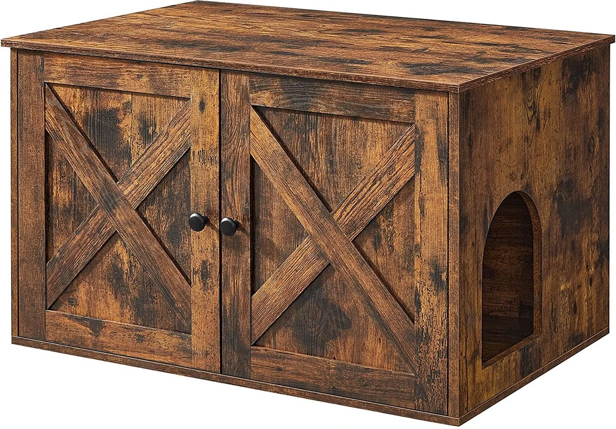 Achter de deuren is er een vak van 50 x 50 x 46 cm waarin bijna alle standaard kattenbakken passen. Een scheidingswand aan de rechterkant zorgt voor meer privacy. Je kan zelf beslissen of je de partitie er in houdt of verwijderd.