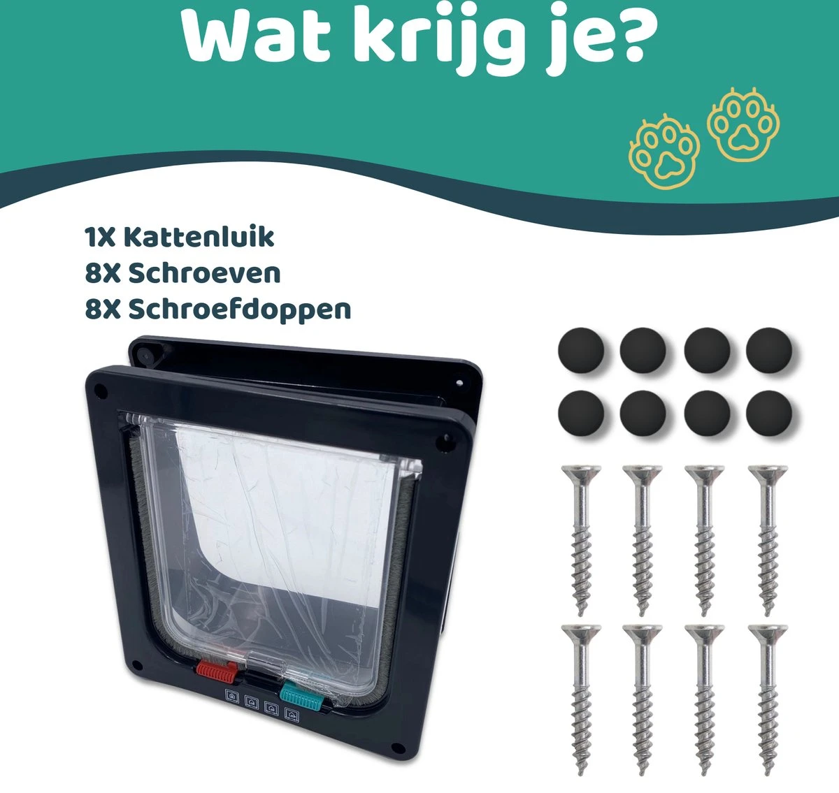 Met slechts 8 schroeven is je kattenluik in een mum van tijd geïnstalleerd. Enkele moeilijkheden? Neem de handige gebruiksaanwijzing erbij die je doorheen de installatie helpt.
