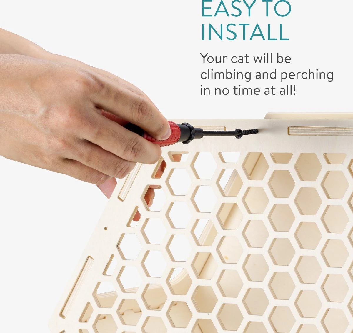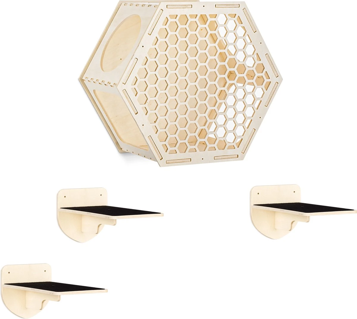 - KNUS PLEKJE: De zeshoek is niet enkel een leuk klimrekje, maar ook een comfortabele rustplek voor je huisdier. Dit knusse kattenhuisje is de perfecte locatie om een dutje te doen of de kat uit de boom, eh, het rek te kijken.