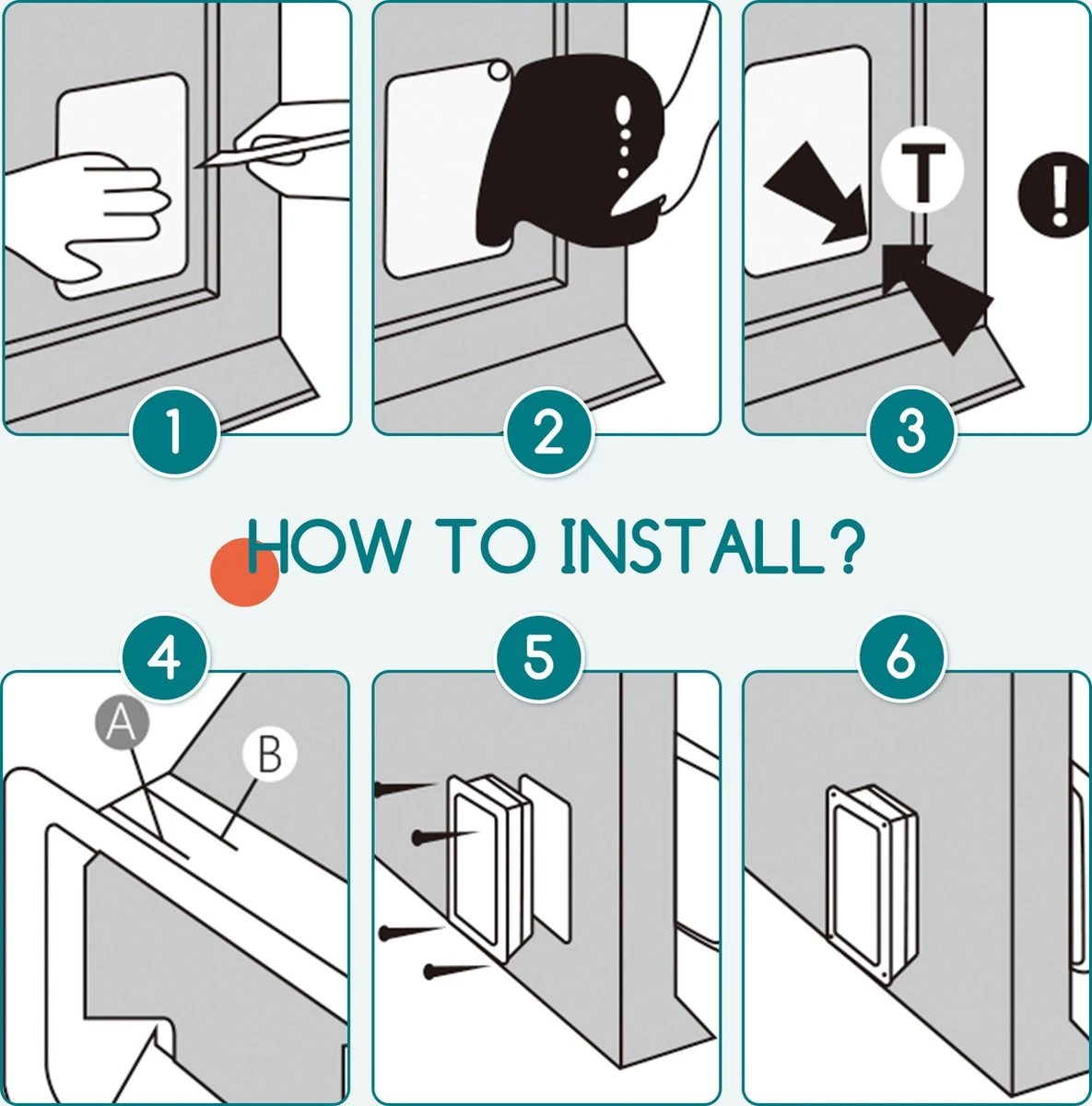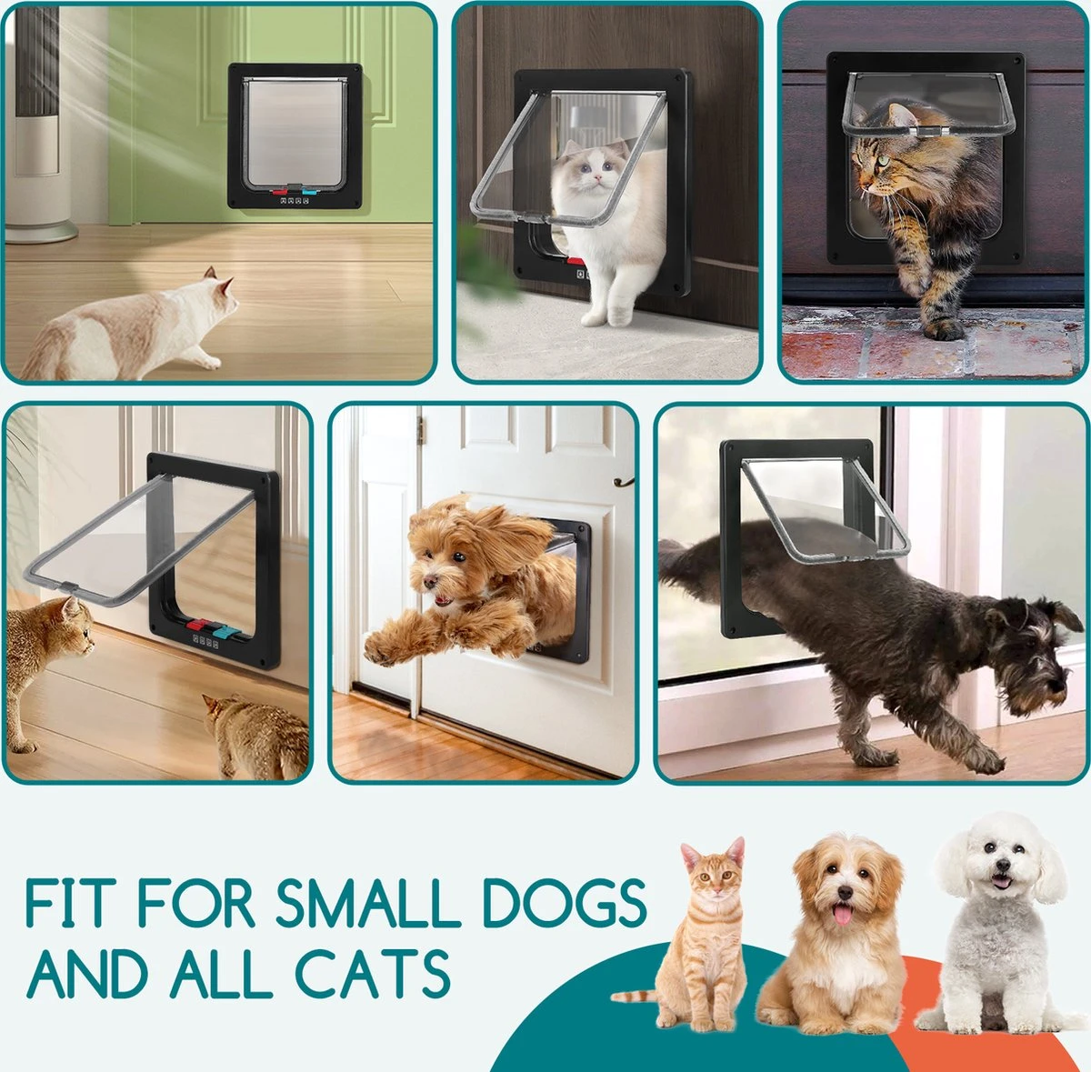Geschikt voor bakstenen muren, houten deuren, PVC en metalen deuren, dit huisdierluik kan worden geïnstalleerd op deuren en muren met een dikte van 2 cm tot 6 cm. U kunt de voering knippen om te passen volgens de dikte van uw deur. Het kattenluik is gemaakt van robuust ABS-kunststof, is weerbestendig en gemakkelijk te reinigen.