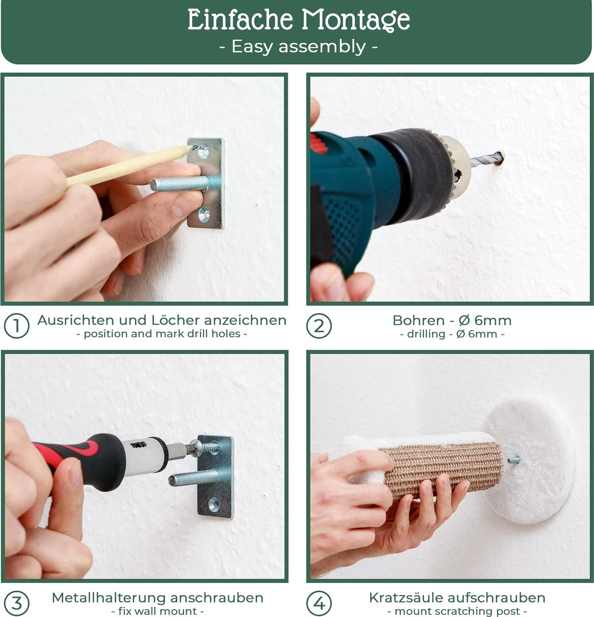 Pfotenolymp® Kattenklimwand – Wandmontage – 22 X 6 Cm – 2 Klimtreden Voor Klimlandschap – Klimboom – Klimwand Voor Katten Met Sisal