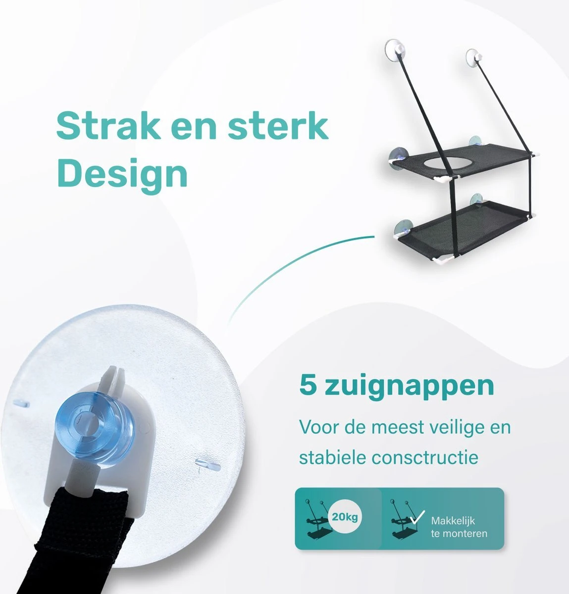 Raamhangmat – Dubbellaags – Met Zuignappen – 20kg Draag Gewicht – Kattenhangmat – Hangmat Kat – Kattenbed – Kattenkussen – Kattenbank – Kattenmand – Raam – Kattenhangmat Raam – Zwart – Radiator