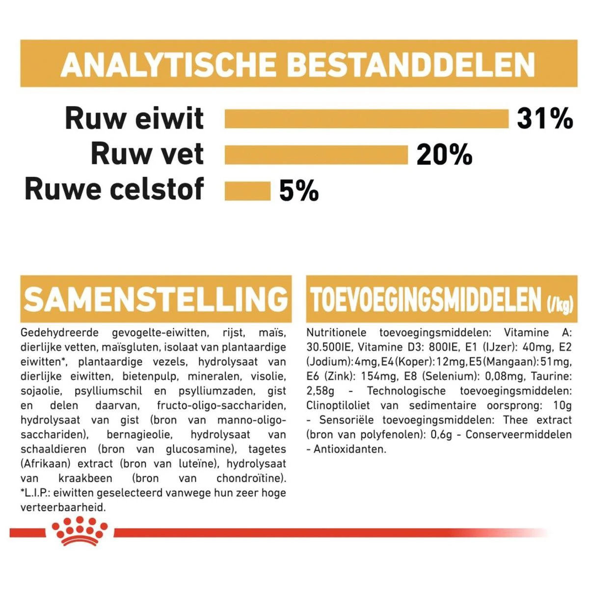 De gezondheidsvoedingen van Royal Canin zijn verrijkt met L-lysine. Dit aminozuur draagt bij tot een vermindering van de klinische symptomen en virale uitscheiding van het Feline Herpes Virus type 1.