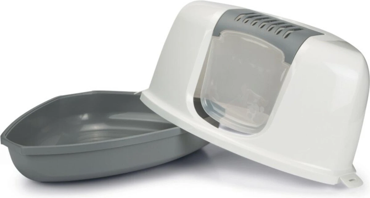 | Verpakkingsinhoud | 1 x 58,5X45,5X40 CM savic hoek kattenbak nestor grijs / wit |