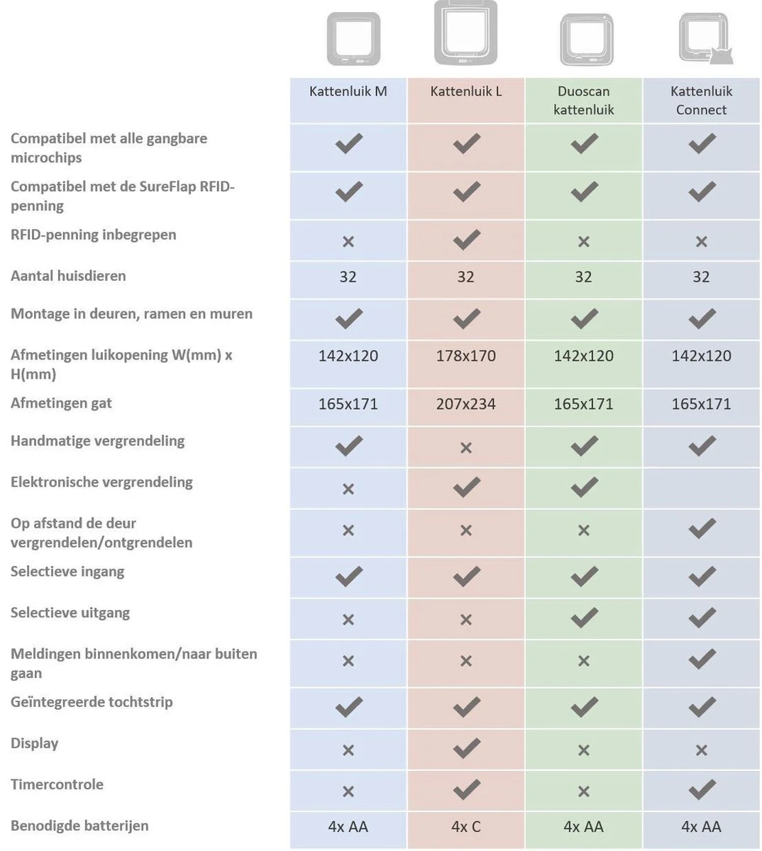 SureFlap heeft meerdere modellen die extra opties hebben.
