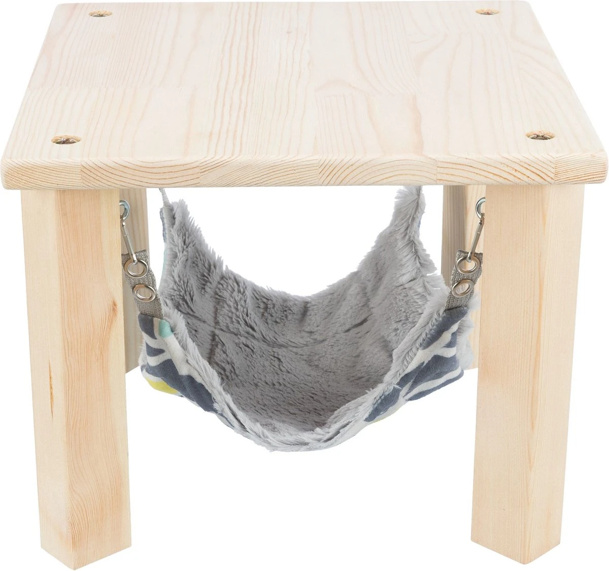 Trixie Schuilplaats Met Hangmat Sunny Assorti / Grijs 28 x 28 x 24 cm De Trixie Schuilplaats Met Hangmat Sunny Assorti / Grijs van 28 x 28 x 24 cm is een schuilhuisje voor knaagdieren als cavia’s met daarin een hangmat. Jouw cavia kan dit huisje zowel als schuilplek of uitkijkplaats gebruiken! Het huisje is gemaakt van onbehandeld hout en eenvoudig te monteren. In het huisje is een hangmat geplaatst, die je eenvoudig in hoogte kunt verstellen voor de verschillende oogjes. De hangmat is gemaakt van zacht pluche en wasbaar met de hand. – Schuilhuisje voor kleine knaagdieren, zoals cavia’s of ratten- Van onbehandeld hout- Met een hangmat om in te luieren, in hoogte verstelbaar- Hangmat van lekker zacht pluche, wasbaar met de handAfmetingen: 28 x 28 x 24 cm
