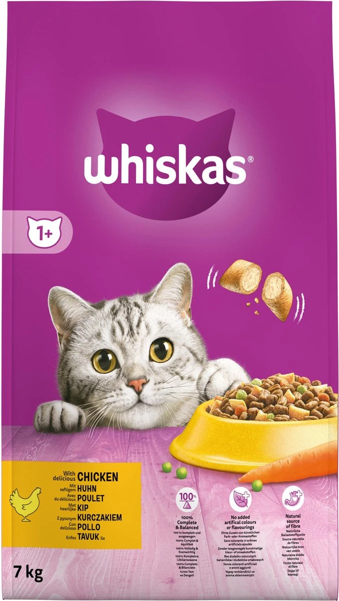 En dat niet alleen… De Whiskas® brokjes zijn onweerstaanbaar. Krokant vanbuiten en heerlijk mals vanbinnen. Elk brokje zit vol smaak, natuurlijke ingrediënten en essentiële voedingsstoffen. Deze dragen bij aan gezonde urinewegen, een gezonde huid en vacht, schone tanden en een sterk gezichtsvermogen. Als dat geen lang en gelukkig leven vol smullen wordt!